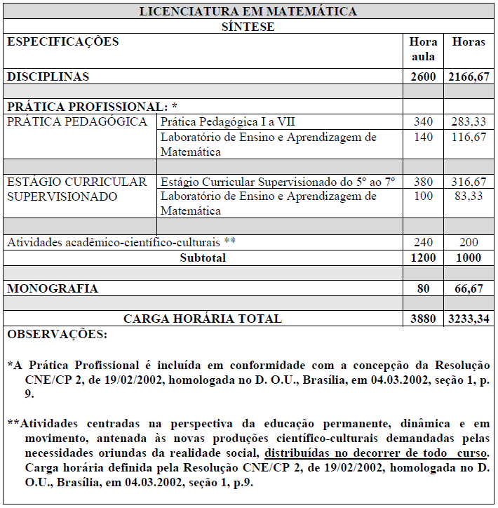 CURSO DE LICENCIATURA EM MATEMÁTICA